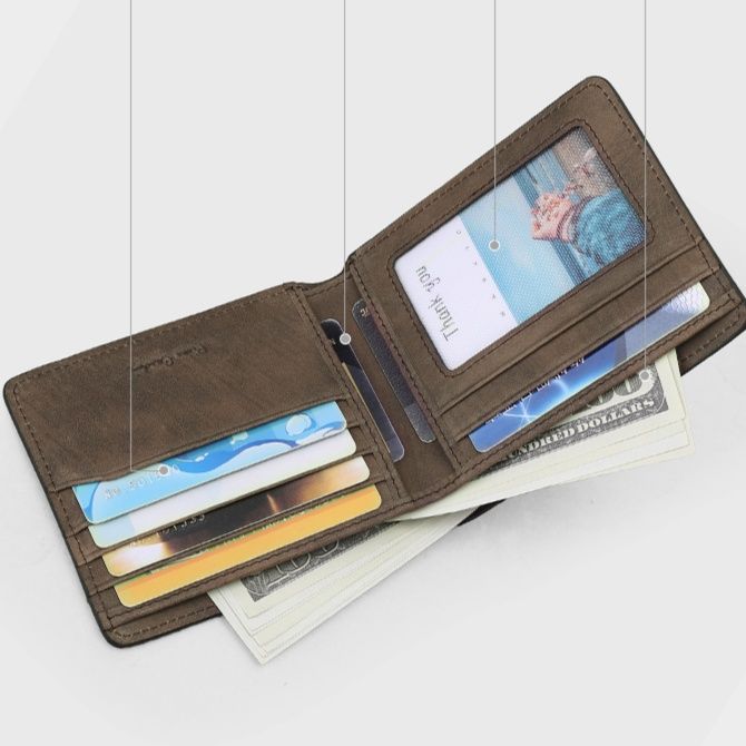 高級感のある素材を使用した二つ折り財布コンパクトで、カード収納力が抜群です。最大8枚の銀行カードと紙幣を収納可能。