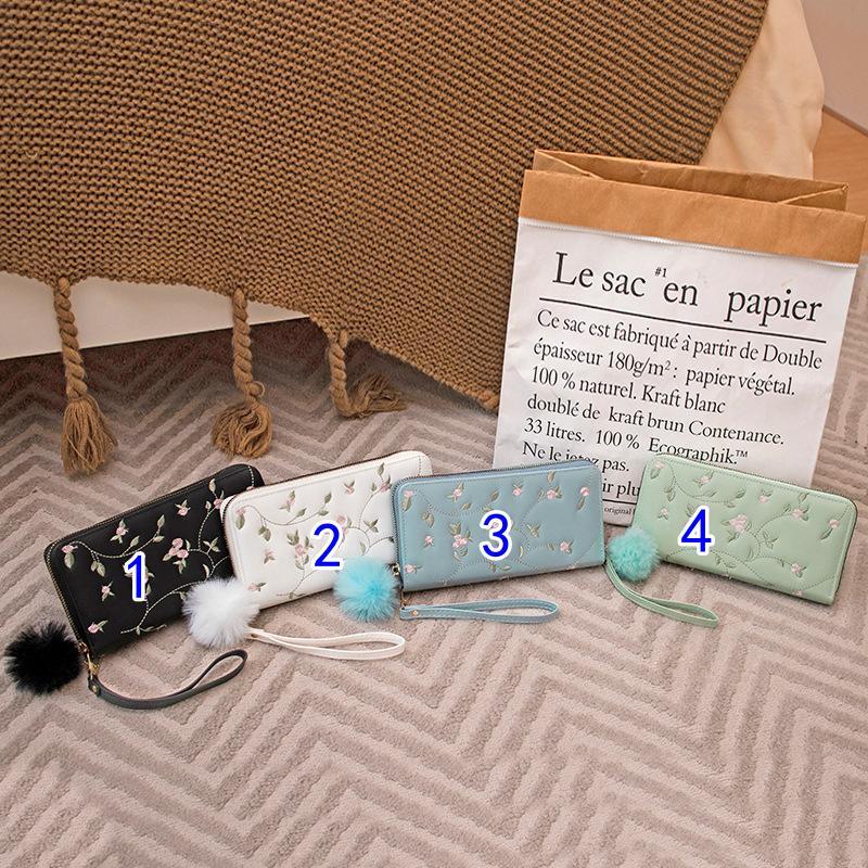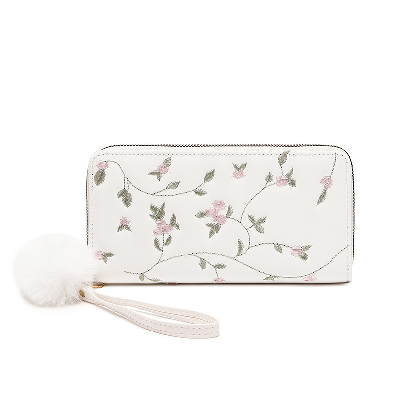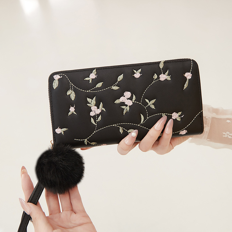 美しい花柄刺繍が施されたレディース長財布です。