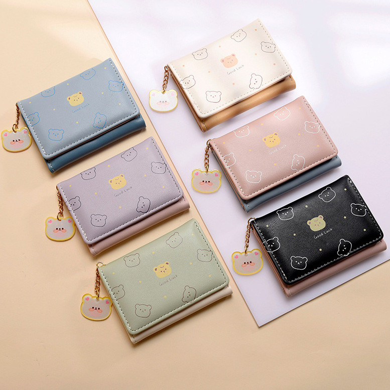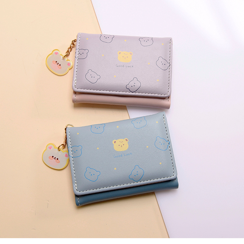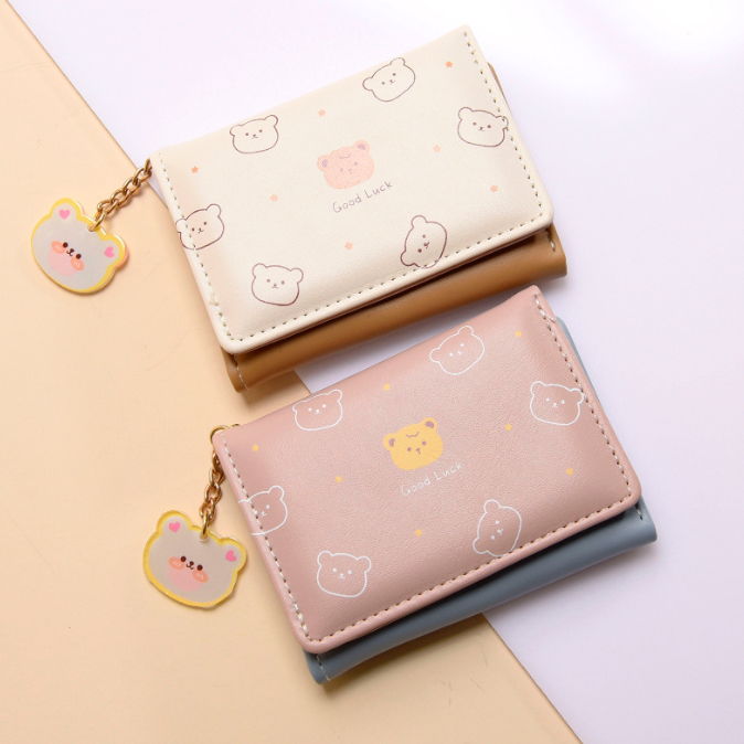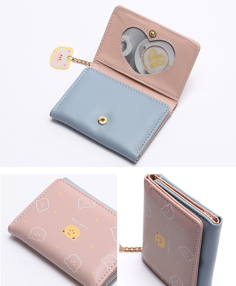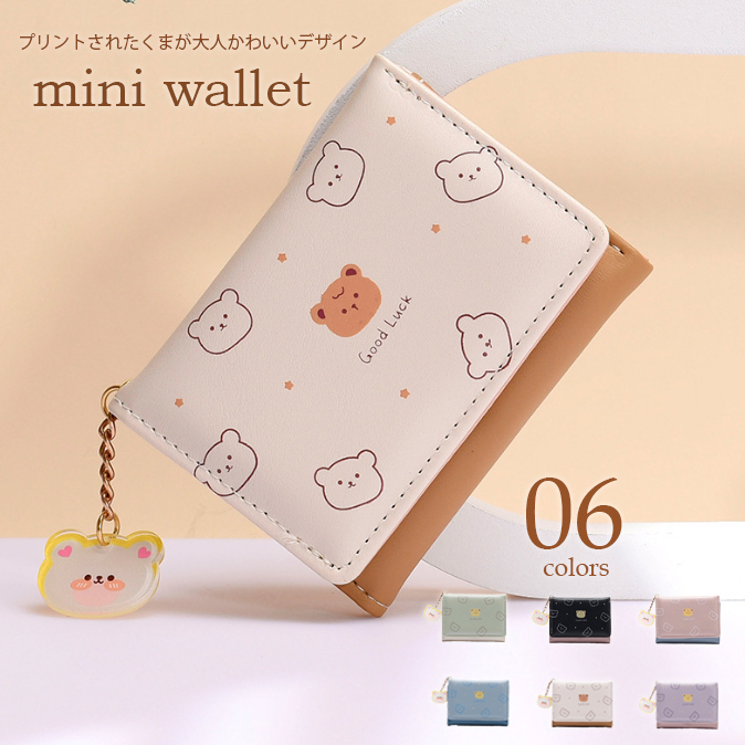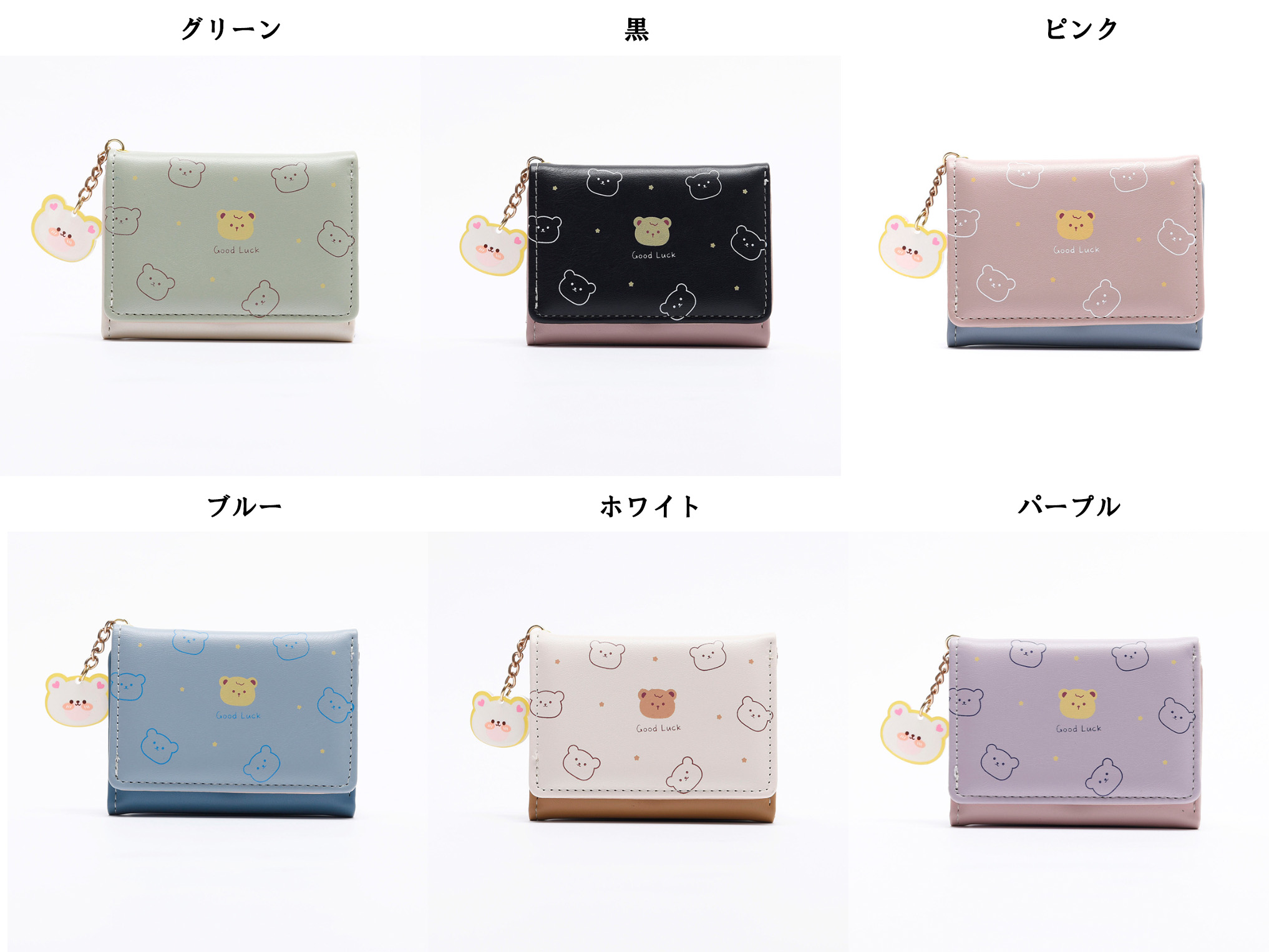 可愛いくまちゃん柄が魅力的なレディース向けコンパクト財布です。