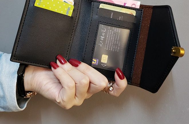 個性的なクリップモチーフの金具がアクセントになったレディース財布です。