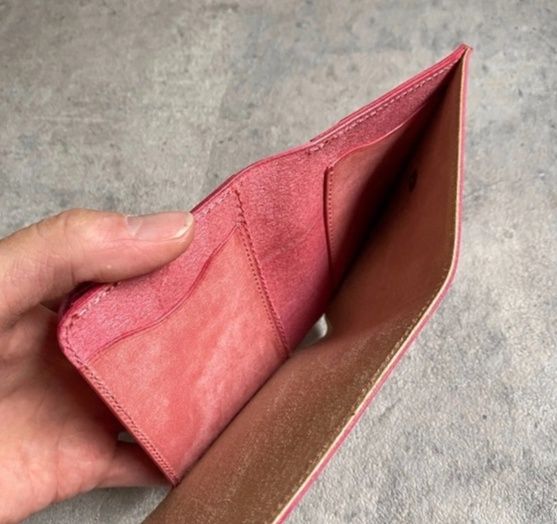 内側には小銭入れやカード収納スペースを備え、必要最低限の収納力を確保しながらもコンパクトなデザインを実現しました。